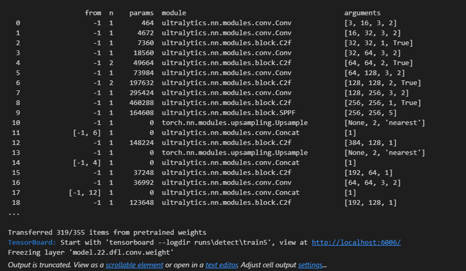 Training a custom YOLOv8 model involves fine-tuning the network on your specific dataset to learn to detect objects accurately. Below is a basic training script provided by Ultralytics: