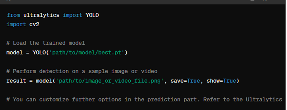 After training your custom YOLOv8 model, it's essential to evaluate its performance on sample images or videos to ensure its accuracy and reliability in real-world scenarios. In this section, we'll demonstrate how to perform sample detection using your trained model and interpret the results.